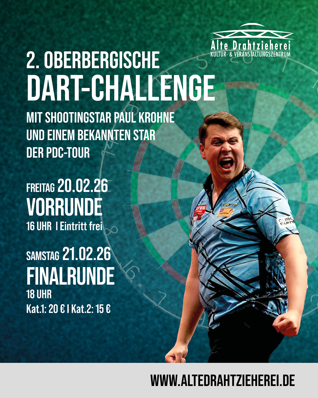 Am 20. und 21. Februar 2026 wird die Alte Drahtzieherei erneut zum Treffpunkt der Dart-Szene im Oberbergischen Kreis. Nach der erfolgreichen Premiere geht ...